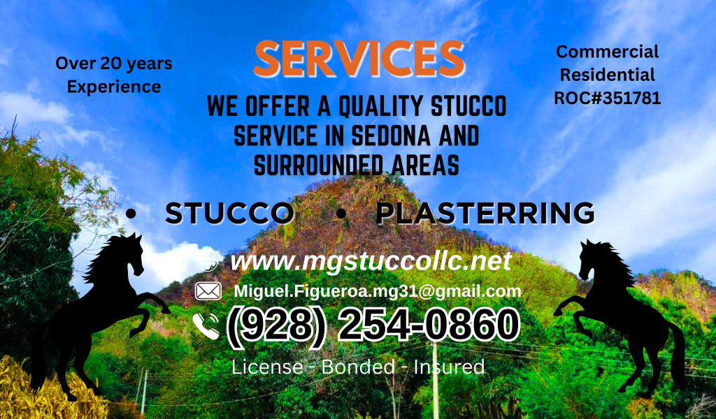 At MG Stucco LLC, we specialize in high-quality residential and commercial stucco services throughout Cottonwood, AZ, and surrounding areas. With 21 years of professional experience, we deliver durable finishes, strong protection, and beautiful results that stand the test of time.